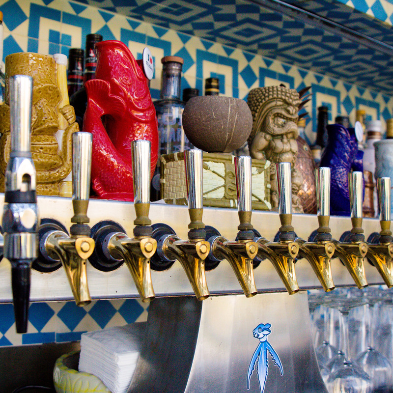 This is my favorite tiki bar in town hands down. Try the Zombie or the Oaxacan Old Fashioned. The Zombie is killer. You can order food from downstairs which is also awesome. The fried potatoes or the pastrami are both incredible. Fun place to come on a warm afternoon.